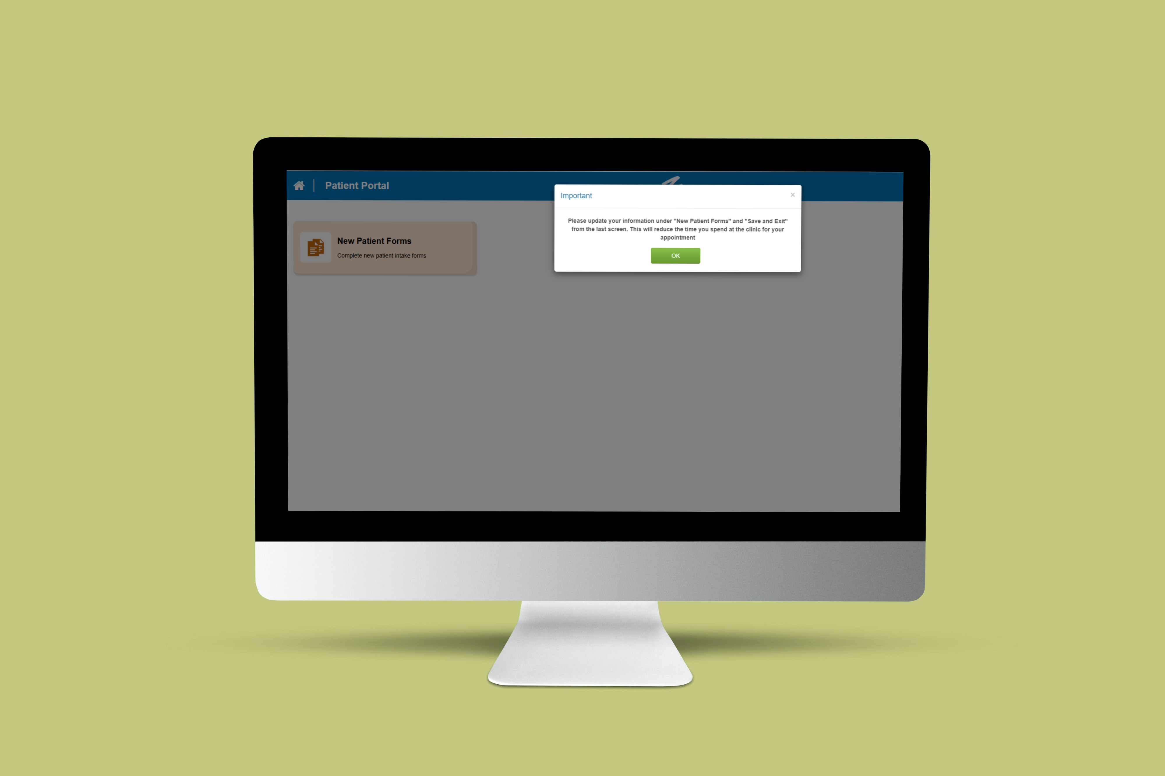 4. Patients will receive an important message. They can click the "Ok" button on the modal screen to continue.