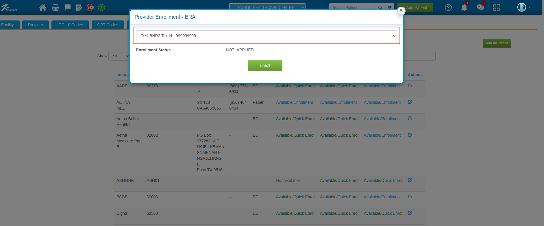 Note: This step is essential to map the correct ClaimMD payer to the payer added in the zHealth Insurance Master. Once the correct ClaimMD Payer ID is mapped, the system will indicate whether the payer requires EDI pre-enrollment. | |