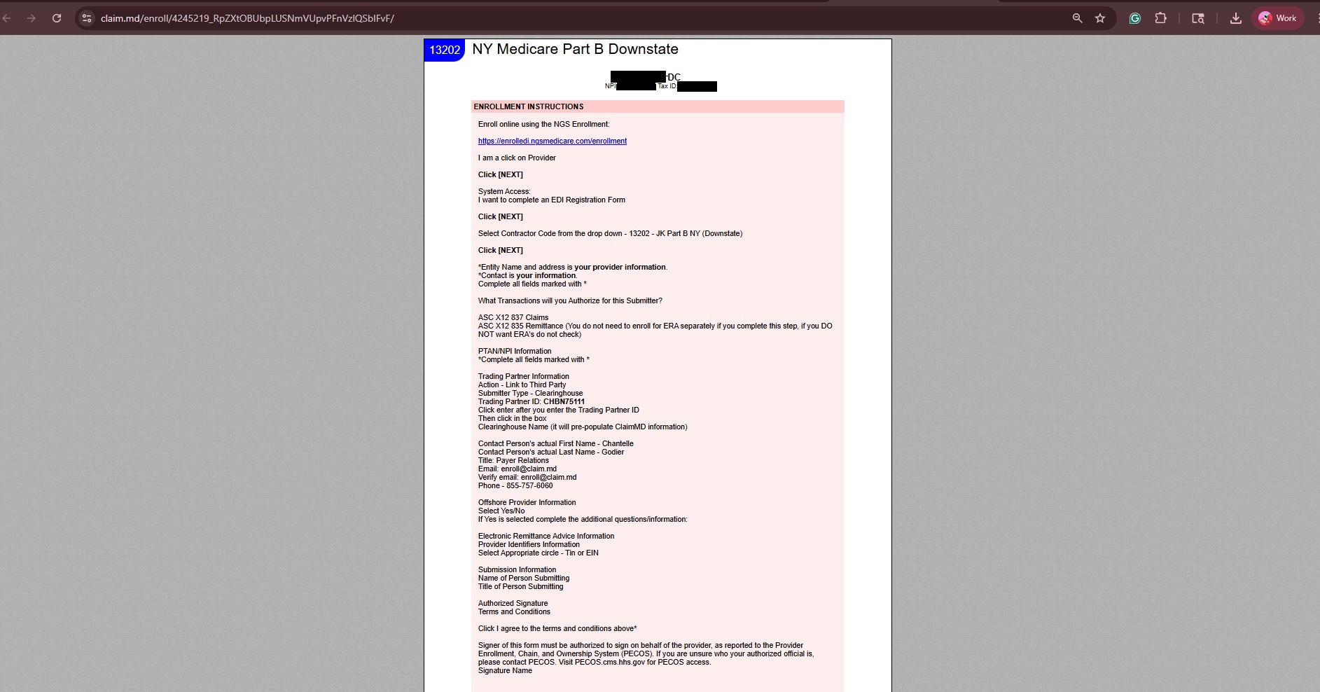 6. Once you have selected the provider or the facility from the dropdown option, clicks the “Enroll” button, an enrollment page will open in a new tab or display the instructions. Review the instructions carefully and follow them as mentioned to complete the EDI enrollment process. Typically, the instructions include the following information: - Where to fill in the EDI enrollment form