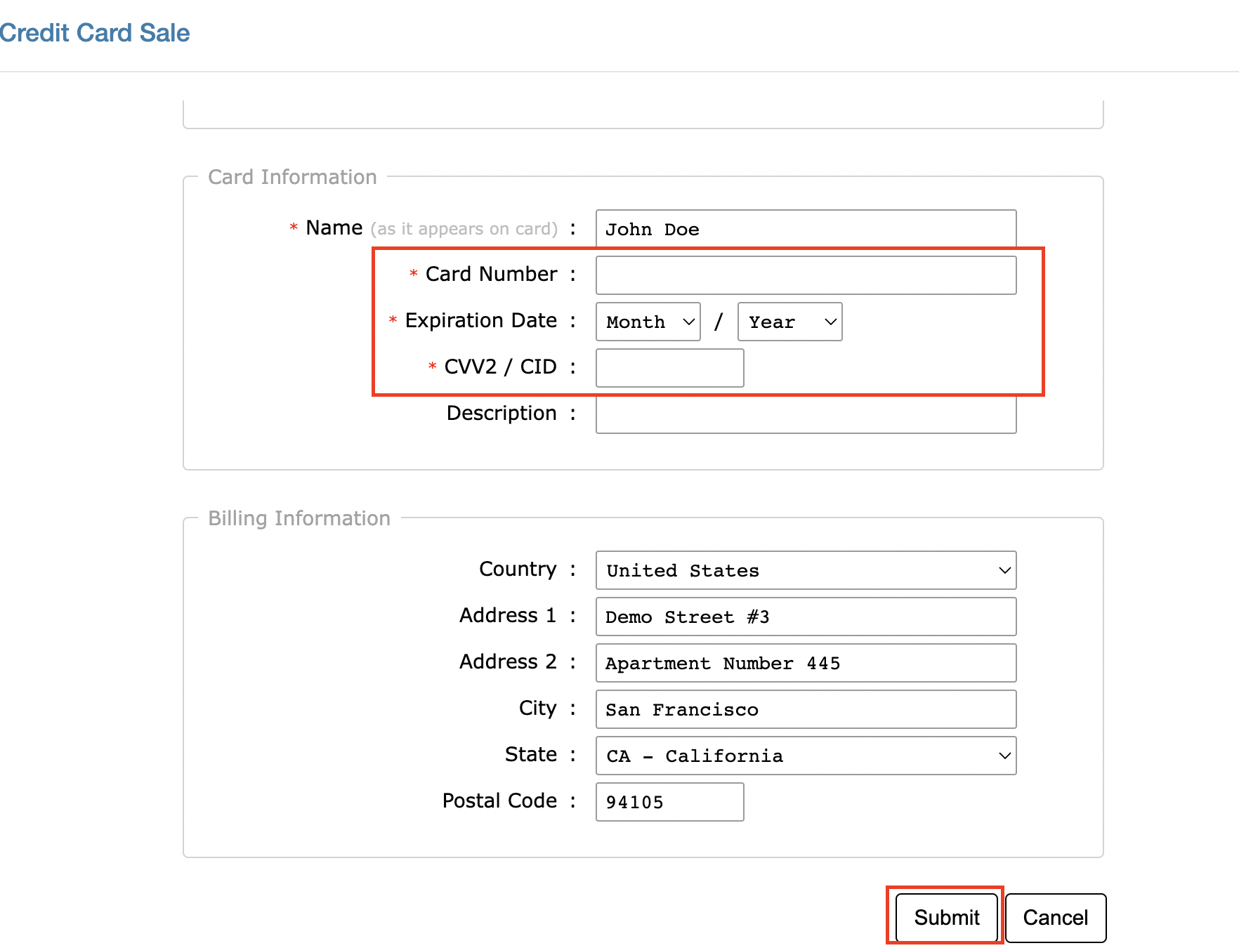 ![]() 5a. If you choose zH-EPay, a new window will open where you can enter patient's credit card number, card expiration date, and CVV number. Click "Submit" to proceed. zHealth Pay will process this payment to your account. |