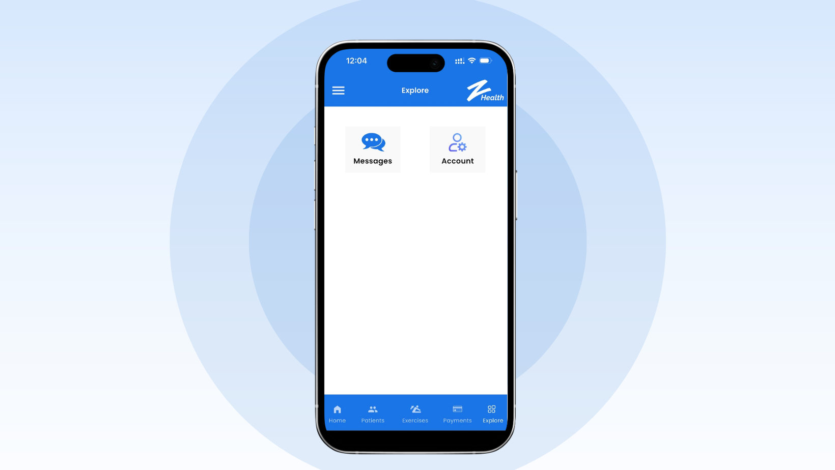 ![]() 1. Sign in to your zHealth Provider App using your login credentials. Then, tap the "Explore" option located at the bottom right corner of the navigation bar. |