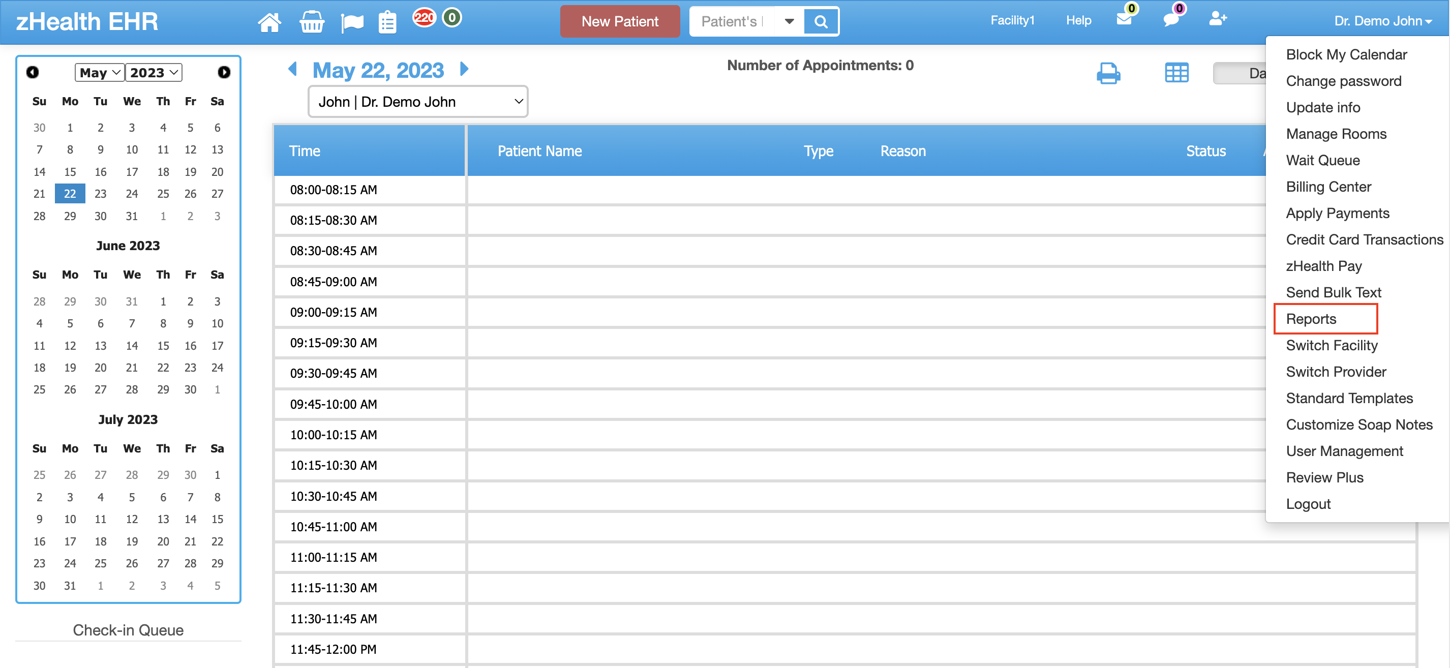 ![]() 1. On the zHealth dashboard, hover the cursor over your name on the top right corner. Click "Reports". |