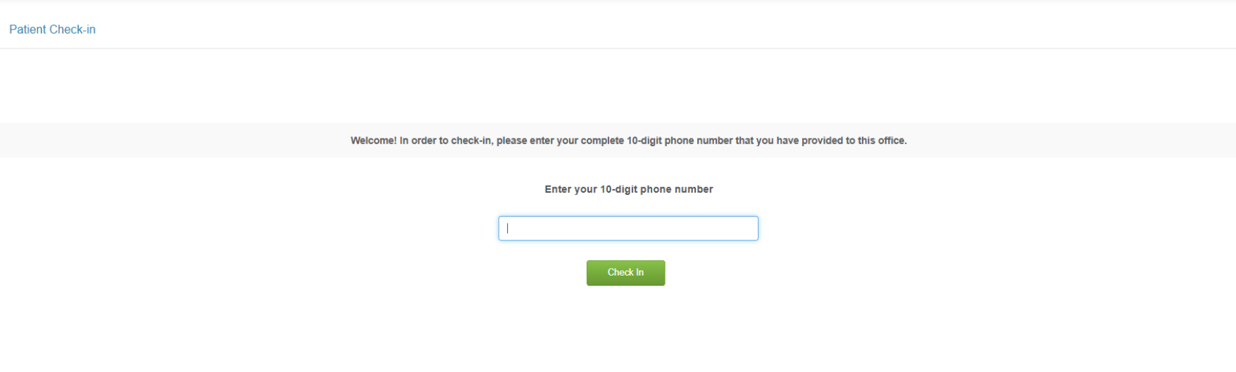 2. The patient can enter the registered phone number on patient's file with the clinic in the front desk login screen to start the check-in process.