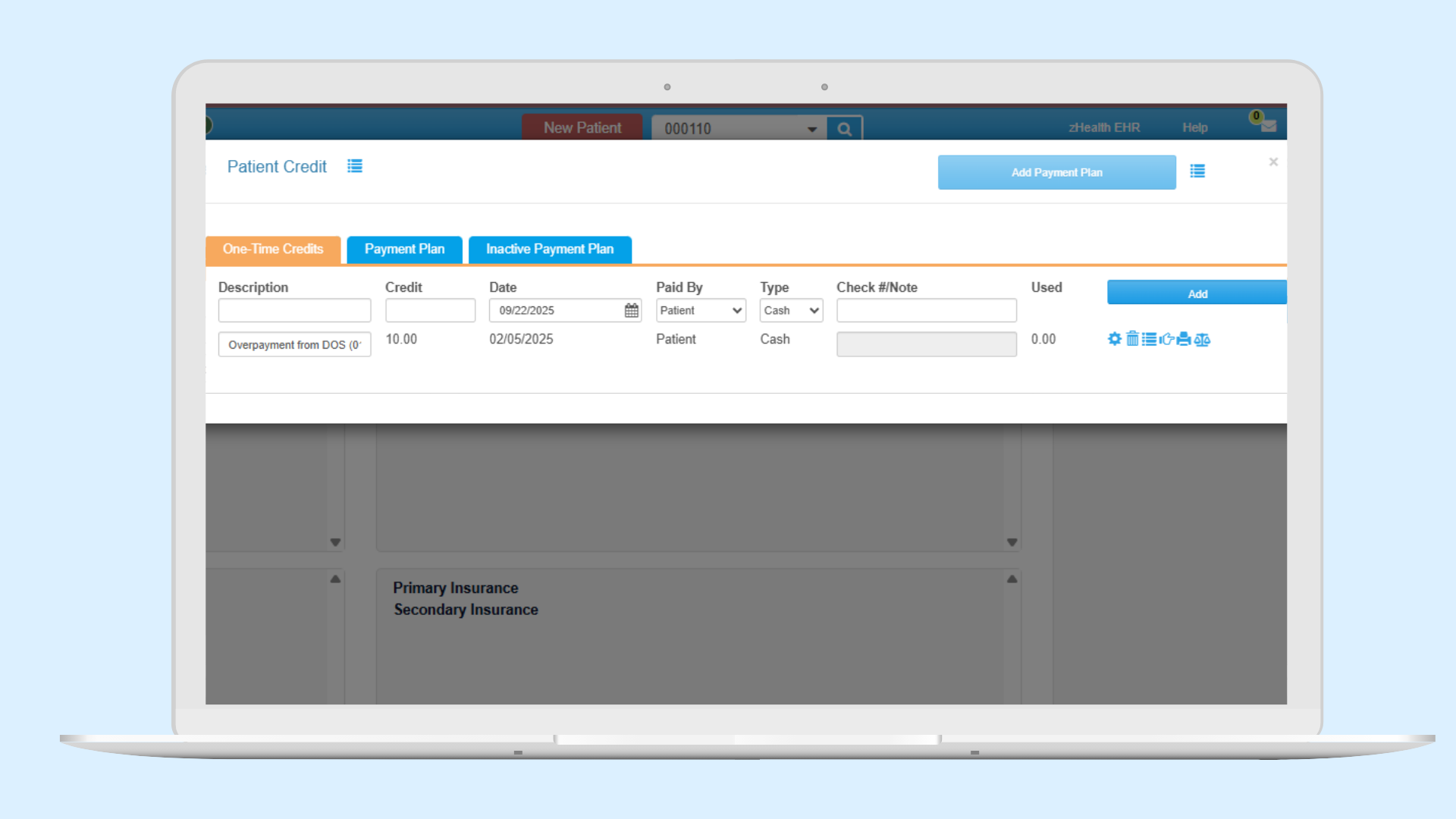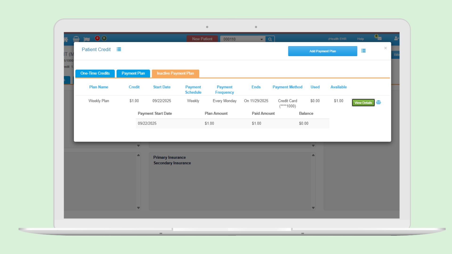 ![]() 1. Open the patient's file for whom you want to add a payment plan. |
