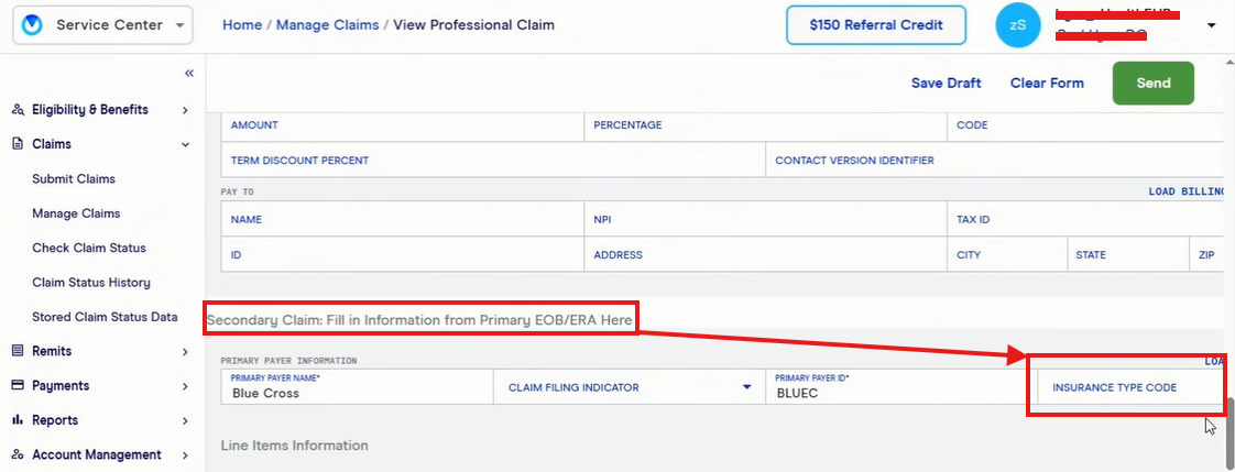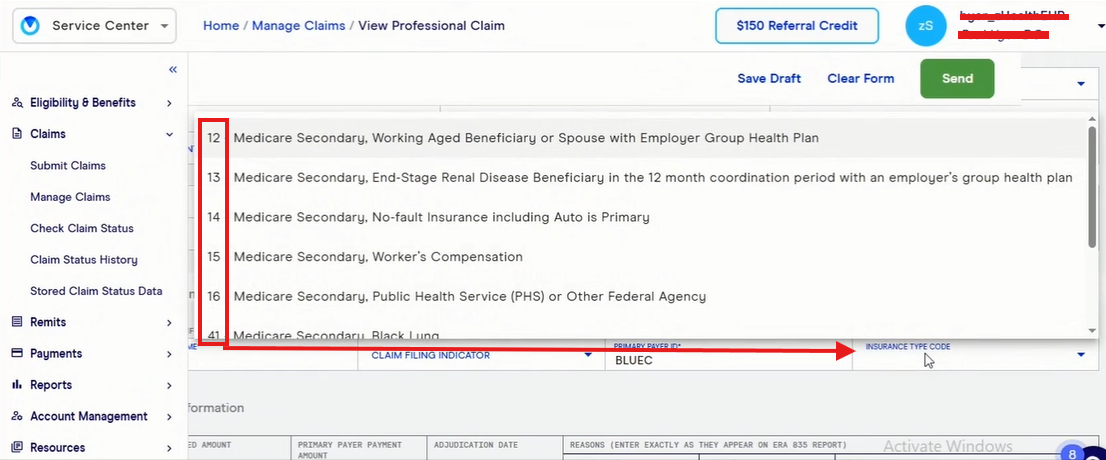 At next screen you will see the claim form scroll down towards bottom until you see “Insurance type code”