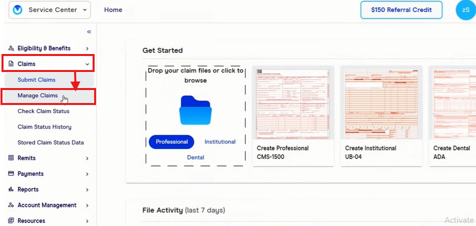 If an insurance company (like auto insurance providers) accepts only paper claims, you must configure paper claim settings for that insurance company in your account. 1. Access your zHealth Dashboard. On the Dashboard, you will see Your Name ...