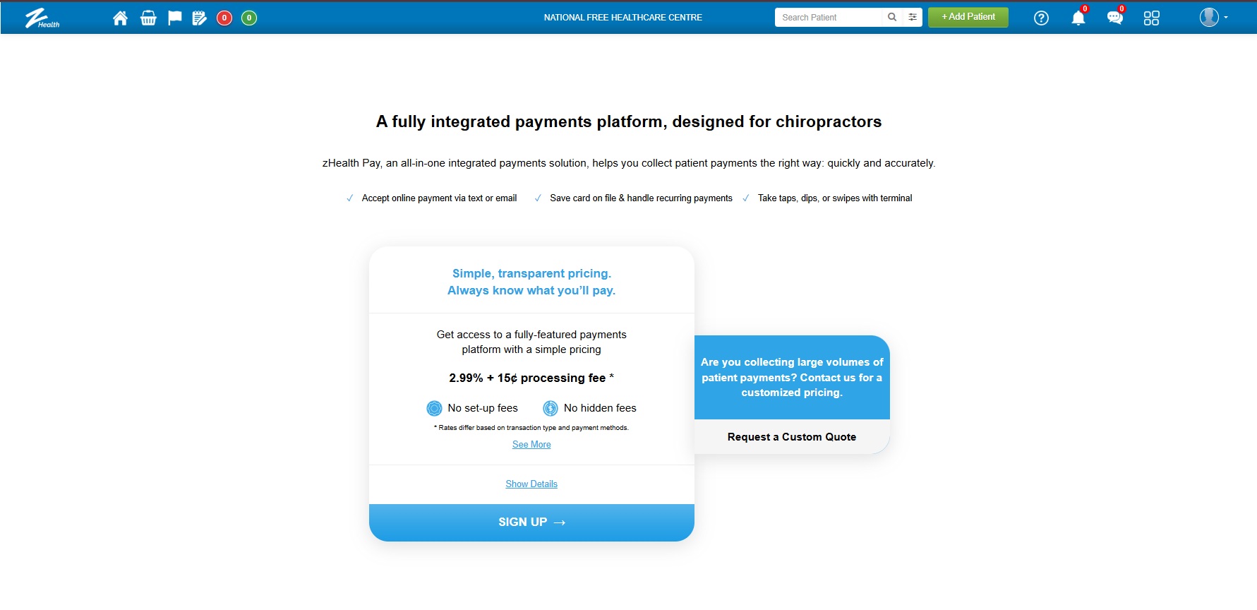 software with end-to-end encryption. Sign up and start taking payments with zHealth Pay quickly. With clear and competitive pricing,