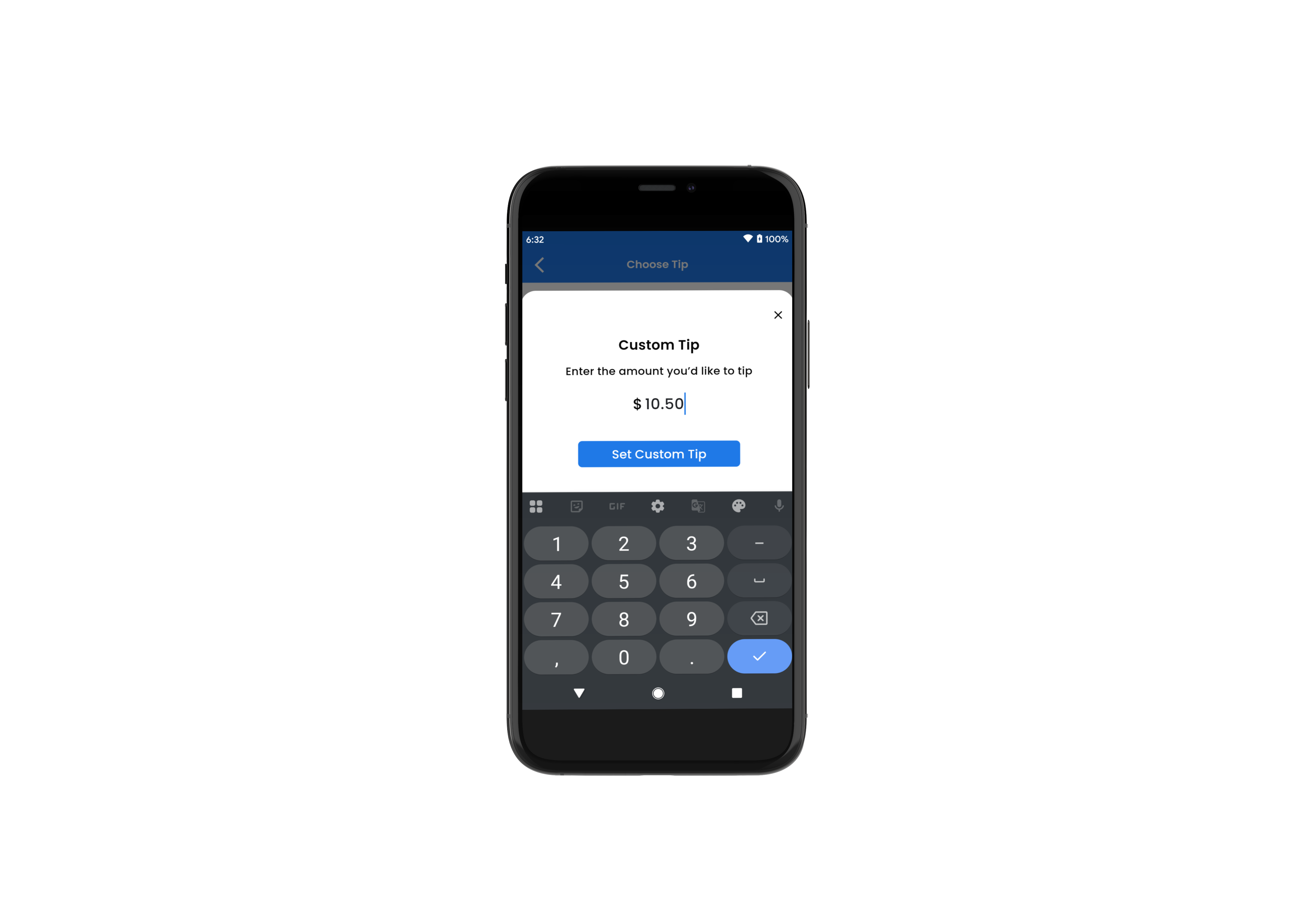 Custom Tip Option- Allows users to enter a custom tip amount they want to pay.