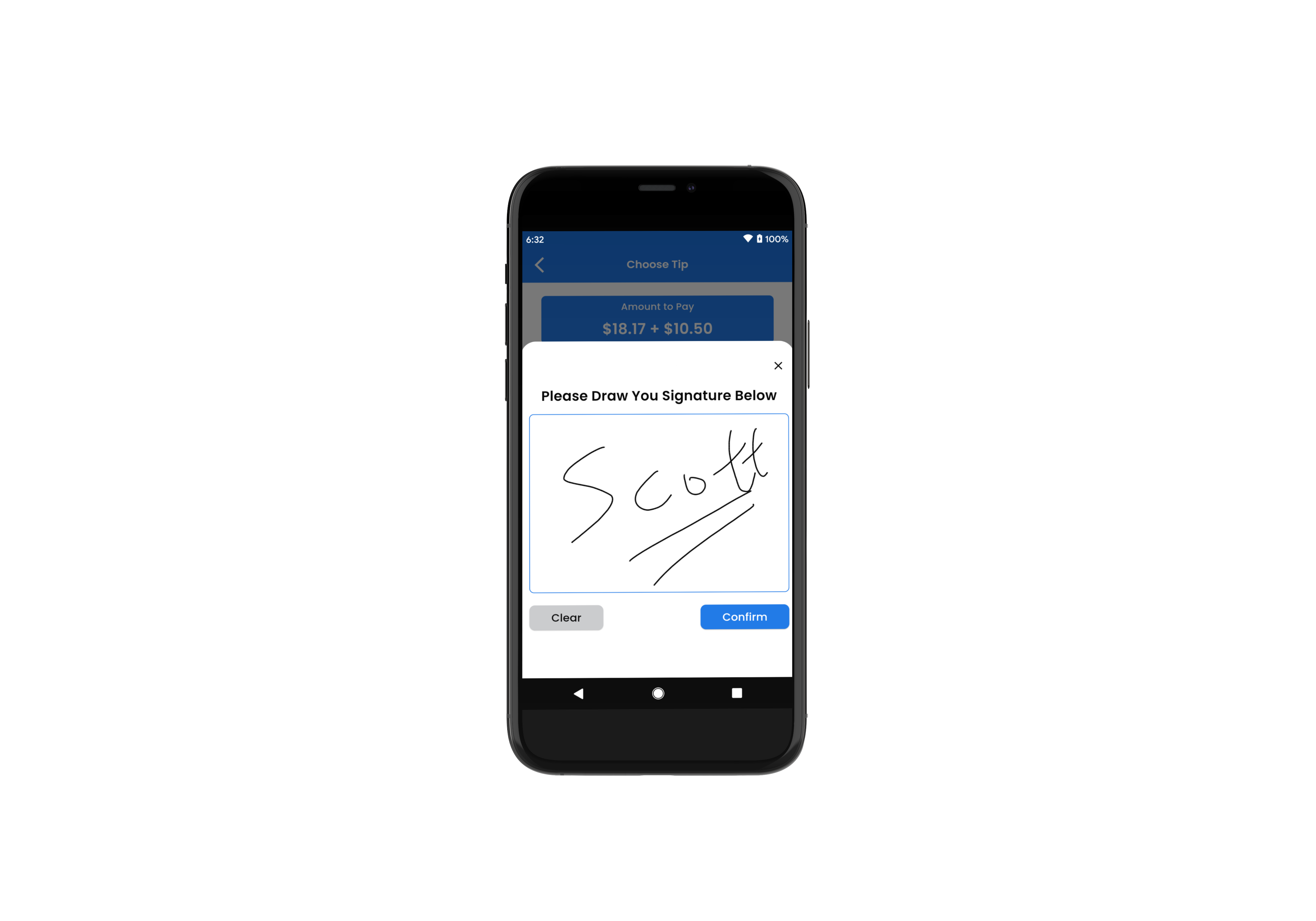 6.After selecting a tip amount (or choosing no tip), the patient must electronically sign.
