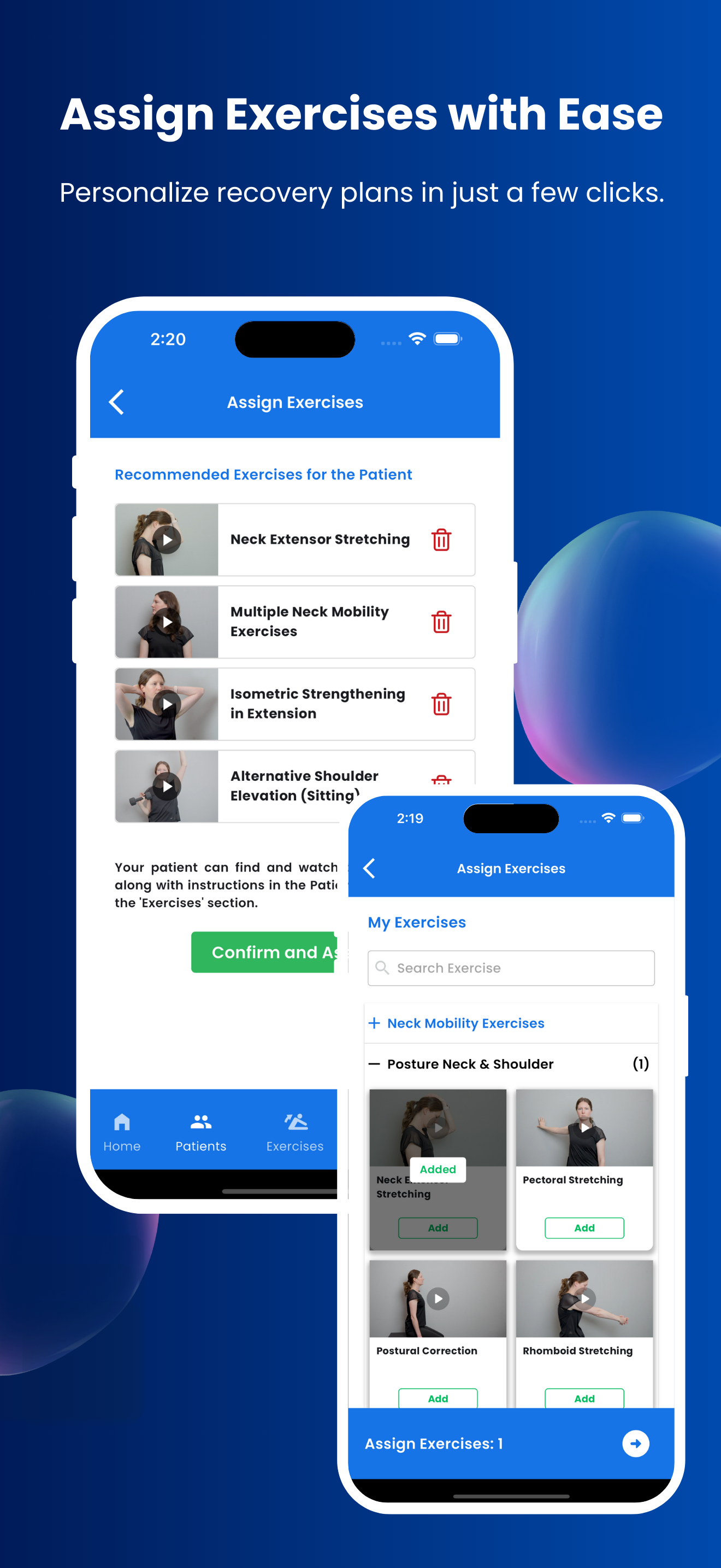 Upload and control your custom exercises and videos to assign them to the patient's HEP using the Mobile Apps