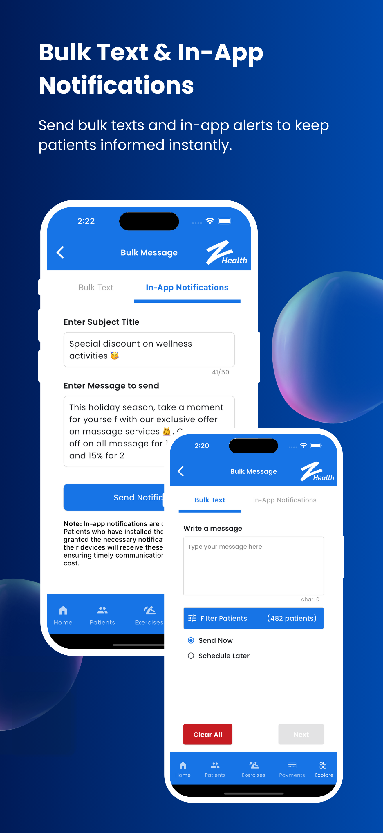 Send bulk in-app notifications to all active patients with the zHealth Patient Mobile App installed.
